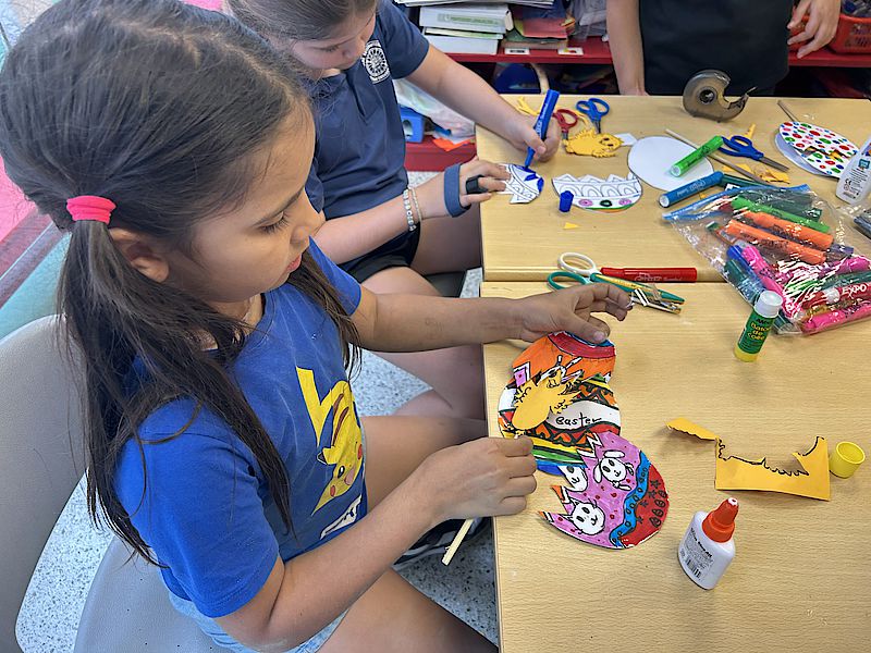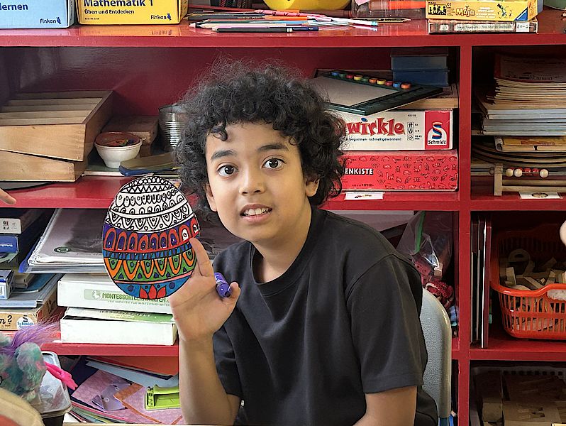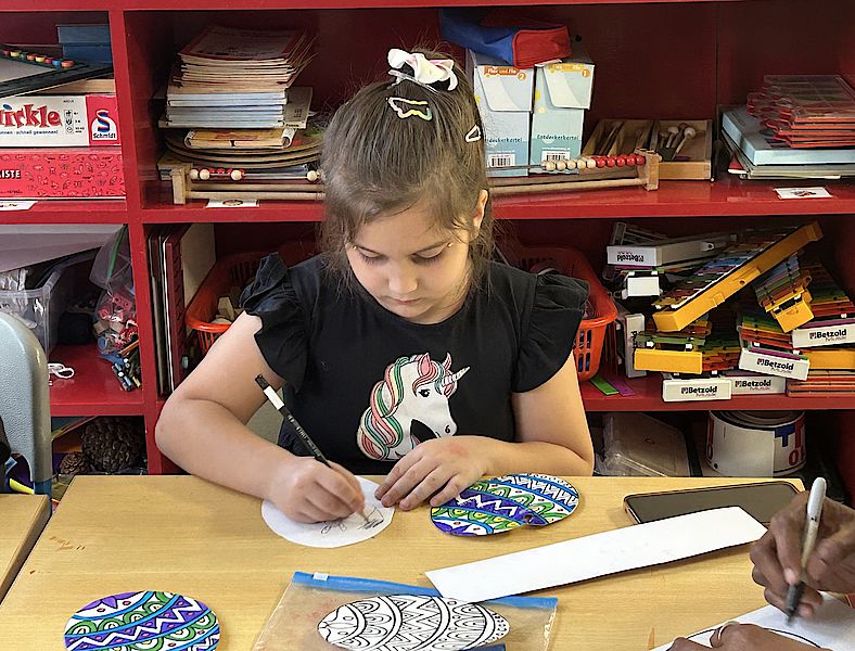 Ob Ostereier, Lesezeichen oder farbenfrohe Fensterbilder – die Schüler:innen arbeiten mit großer Konzentration! Ist die Umrandung erst einmal geschafft, ist das Schwierigste bereits überstanden. Die Farbfüllungen lassen sich anschließend ganz leicht auftragen. Besonders schön sind die transparenten, leuchtenden Farben, die schon bald die Kinderzimmer schmücken werden.