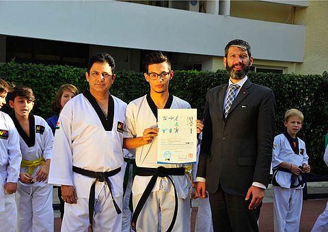 Wir gratulieren. Justin macht schon viele Jahre Taek Won do. Rajinder Kumar, sein fordernder Meister, hat ihn über Jahre hinweg ausdauernd...