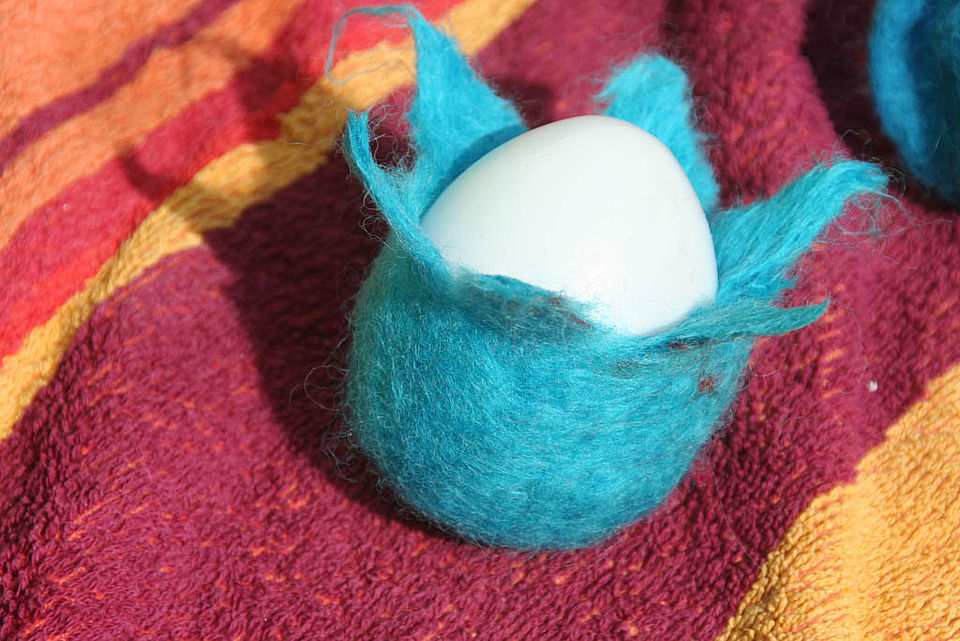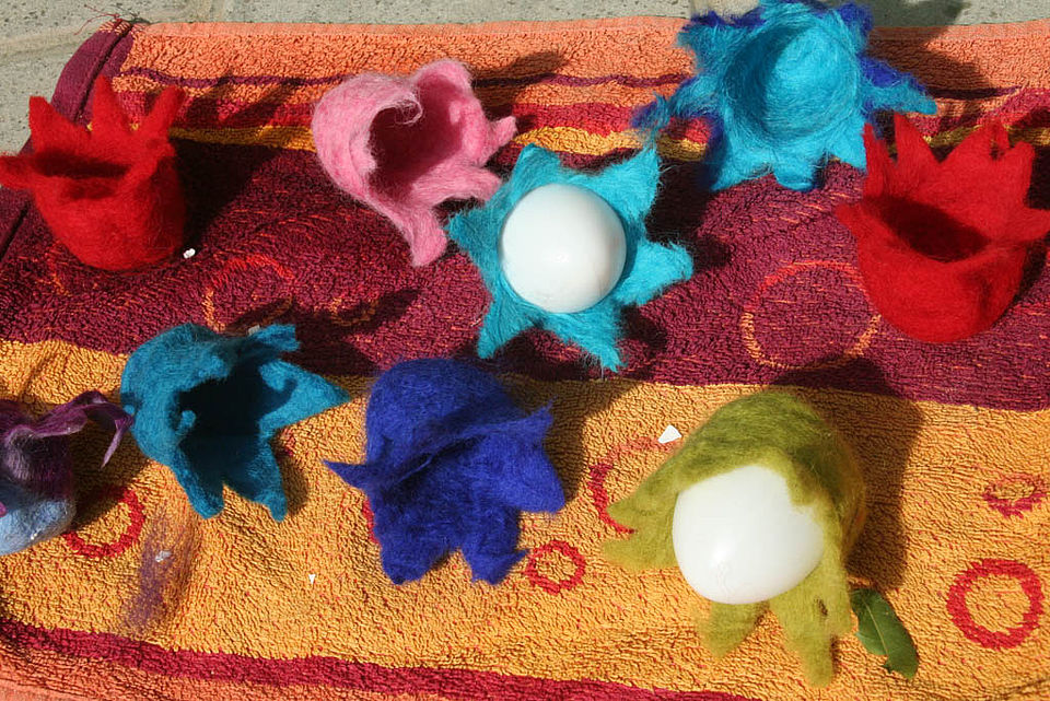 Die Mädchen der Strick-AG hatten kreative Einfälle zum Verzieren der Ostereier und präsentieren anbei die Ergebnisse.