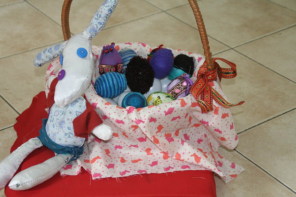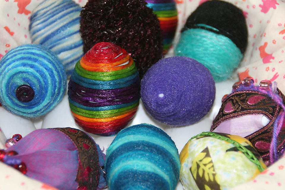 Die Mädchen der Strick-AG hatten kreative Einfälle zum Verzieren der Ostereier und präsentieren anbei die Ergebnisse.