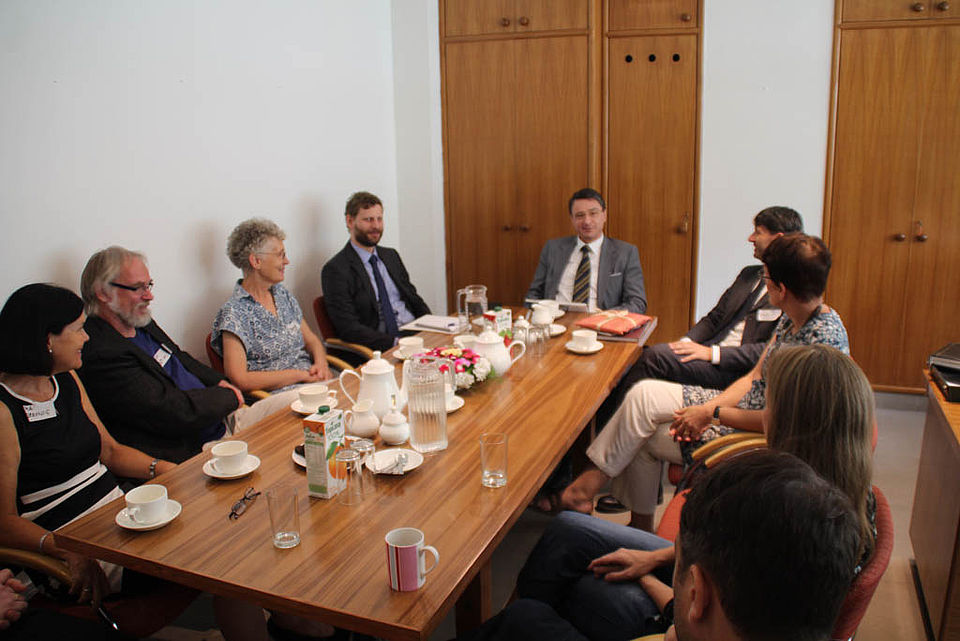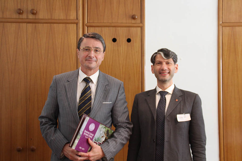 Am 06.08.2015 besuchte der neue Botschafter, Herr Dr. Martin Ney, die deutsche Schule. Im Gespräch mit dem Schulleiter, Procolino Antacido, und dem Team der Schulleitung und Verwaltung berichtete er von seinen Erfahrungen mit den deutschen Schulen im Ausland. Als Kulturreferent hatte er seinerzeit den Neubau der Schule in Singapur unterstützt. Schulleiter und Botschafter waren sich einig, dass eine deutsche Schule im Ausland nicht nur Schule ist, sondern für die deutschsprachige Gemeinde vor Ort häufig auch ein Stück Heimat, ein Stück Deutschland ist und daher ein wichtiger Bezugspunkt vieler deutscher Familien. Erfreulicherweise wird das Angebot der Schule vom Kindergarten bis zum Deutschen Internationalen Abitur sehr gut angenommen, sodass insbesondere im Kindergarten die Kapazitäten an ihre Grenzen stoßen. „Wir wollen vermeiden, dass insbesondere deutschsprachige Eltern, die einen Kindergartenplatz für ihr Kind benötigen, abgewiesen werden müssen, weil wir keinen Platz mehr haben“, sagte der Schulleiter Procolino Antacido. „Für das Raumproblem müssen wir eine gute und unbürokratische Lösung finden.“