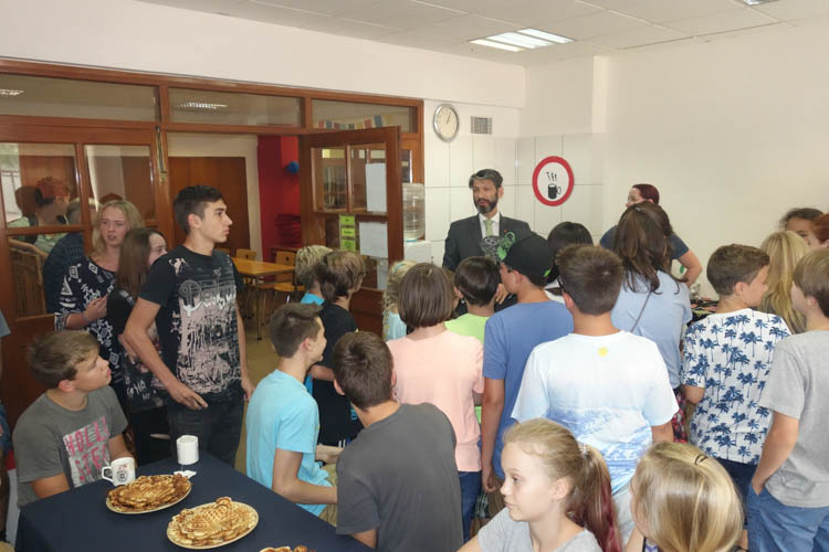 Ein kleiner Schritt für die Menschheit, ein ganz großer für unsere Schule: Die Teestube ist eröffnet und den Schülerinnen und Schülern übergeben. In einer kleinen Feier hat am Mittwoch, den 17. August, unser Schulleiter, Herr Antacido, den im Erdgeschoss gelegenen großzügig bemessenen Raum der versammelten Schülerschaft übergeben. Diese ist nun aufgerufen, die von der Schule bereitgestellte Grundausstattung nach eigenen Vorstellungen zu gestalten, zu ergänzen weiterzuentwickeln – und das nicht nur äußerlich! Zwei Arbeitsgemeinschaften werden die kommenden Wochen nutzen, um aus der Teestube einen Raum der Begegnung, der Entspannung und der Freude zu machen und wir dürfen gespannt sein, was uns die engagierten Schülerinnen und Schüler dann zur nächsten, der feierlichen(!), Eröffnung präsentieren. Bis dahin gibt es Tee in der Stube von 13:30 Uhr bis 15:30, jeden Schultag.
