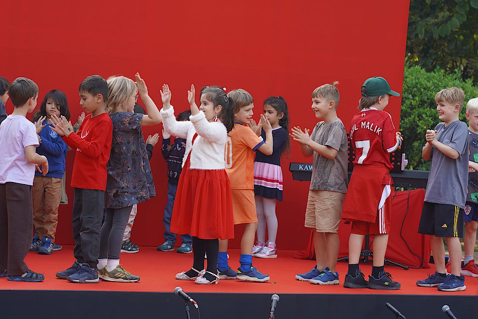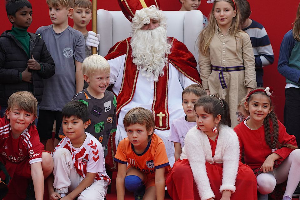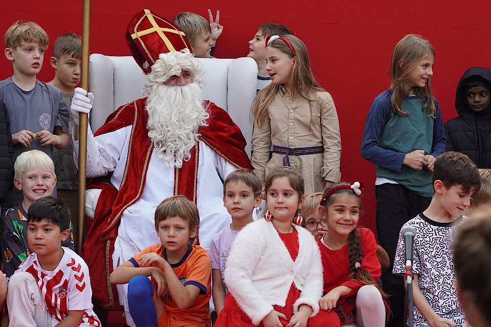 Das Nikolausfest rückte immer näher, und die Kinder aus dem Kindergarten und der Grundschule hatten schon viele Wochen fleißig für den Besuch des Nikolaus geübt. Endlich war es so weit: Am 7. Dezember schien die Sonne, und der Botschaftsgarten war wunderschön geschmückt. Überall liefen fröhliche Kinder voller Vorfreude herum.