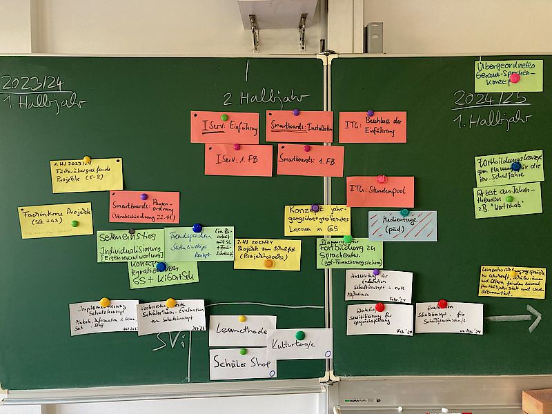Wie können wir Schüler:innen gerecht werden, die mit geringen Deutschkenntnissen an unsere Schule kommen? Wie sieht eine gute Medienbildung für unsere Kinder und Jugendlichen aus und wie wollen wir die Smartboards zukünftig im Unterricht einsetzen? Wie können wir unsere Schüler:innen befähigen, immer mehr Verantwortung für ihren Lernprozess zu übernehmen?