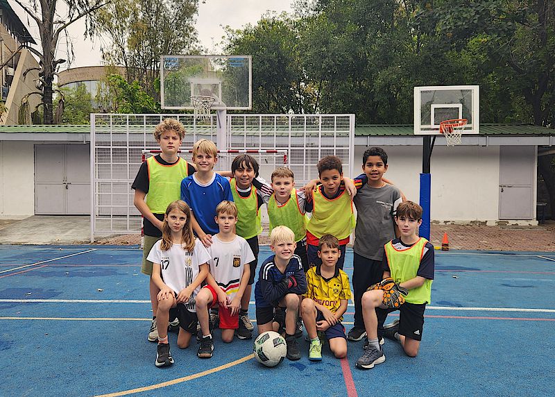 Our CCA mentor Akash teaches primary school students the basics of football in a playful way. The pupils enthusiastically practise scoring goals, passing the ball to each other and defending it against opponents.
