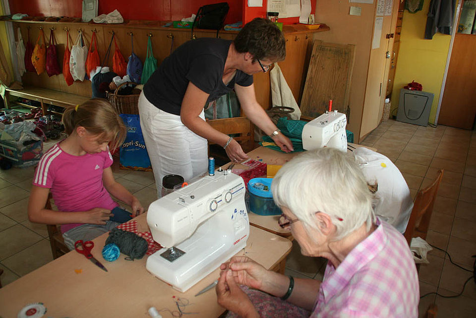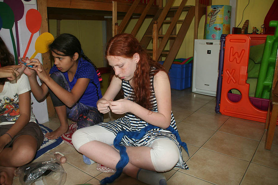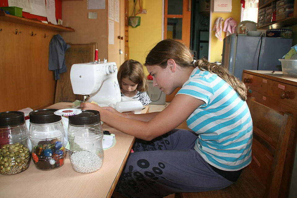 Unsere fleißigen Mädchen beim Nähen und Filzen!
