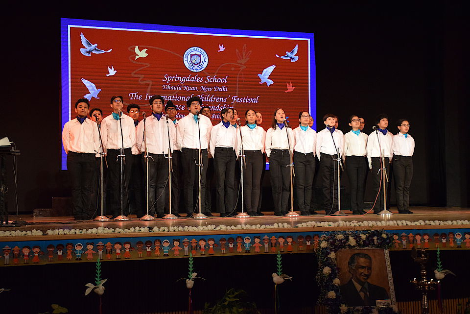 Auf Einladung der Springales School Dhaula Kuan sind am Mittwoch den 8.02.23 die Klassen fünf bis sieben zu einer Veranstaltung zum Thema „Frieden und Begegnung“ gefahren, um unsere Schule zu repräsentieren. Es gab mehrere Vorführungen mit Musik und Tanz und auch wir hatten etwas vorbereitet. Unser Sankt Martin Theaterstück mit dem Thema „Teilen“ passte wunderbar in den Rahmen. Da der usbekische Botschafter der Ehrengast war, gab es auch einen usbekischen Trommler, der auf drei Trommeln gleichzeitig spielen konnte, sowie eine professionelle Tanzgruppe. Es war sehr beeindruckend, zum ersten Mal auf so einer großen Bühne vor einem so einem großen Publikum etwas aufzuführen. Viele von uns hatten großes Lampenfieber, aber letztendlich haben wir es gut gemeistert. Leider waren alle Vorführungen viel zu schnell vorbei und es war Zeit, in die Schule zurückzukehren.