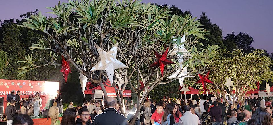 Die Auswahl der Stände macht diesen Markt so einzigartig: Traditionelle Handwerkskunst aus ganz Indien, Backwaren und Glühwein aus Deutschland, ein vielfältiges Bühnenprogramm, ein Kinderprogramm, eine große Auswahl an Speisen und Getränken sowie natürlich der Nikolaus lockten an zwei Tagen wieder über 8.000 Besucherinnen und Besucher auf den Weihnachtsmarkt.