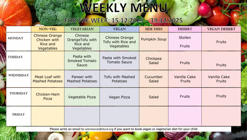 Lunch Plan vom 15.12.25 bis zum 19.12.25